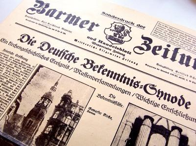 Schriftlich festgehalten sind die Grundpositionen der „Bekennenden Kirche“ in der „Barmer Theologischen Erklärung“ vom 31. Mai 1934. Verabschiedet wurde sie von rund 140 Theologen aus 18 evangelischen Landeskirchen in der Gemarker Kirche zu Wuppertal. In der Barmer Erklärung werden sowohl der Nationalsozialismus als auch die Lehren der „Deutschen Christen“ als Irrlehren verworfen und staatliche wie innerkirchliche Übergriffe auf das christliche Glaubensbekenntnis abgelehnt.